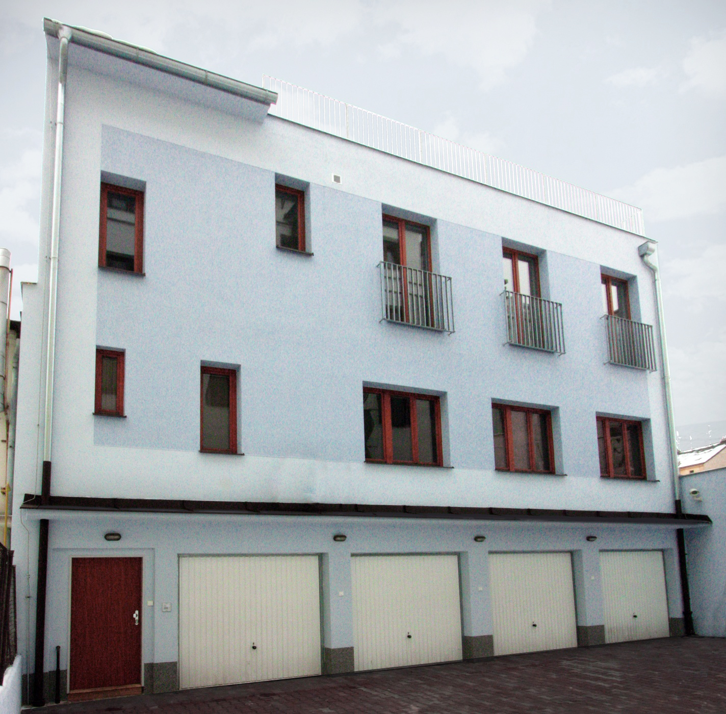 The overall shape of the building is determined by the effort to appropriately represent the corner between Plzeňská and Vrchlického Streets. Visually it fits into the given location, respects the shape of the land and the height level of the surrounding buildings.